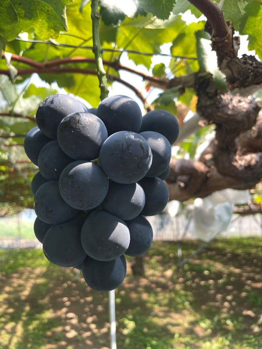 「ナガノパープル」は、長野県オリジナルの大粒ぶどうで、種がなく、濃厚な甘さとすっきりした後味が特長です。光沢のある深い黒色の果皮も食べられることで知られています。