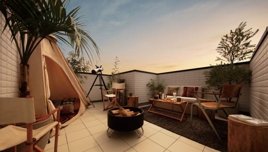 しかし、アイム・ユニバースの「リゾートハウス」に足を踏み入れると世界は一変。 「relax + surprise = 」 の数式の答えとして提示されるのはラグジュアリーなバスルームと青空が広がる「屋上テラス」の「非日常が日常」になる贅沢な時間です。