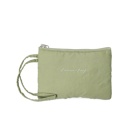 柔らかなセージトーンが印象的で、軽い素材感なので小物をまとめるのはもちろん、日常や旅先にも自然と馴染みます。