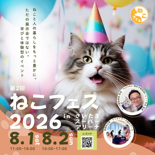 [出典:第2回ねこフェス2026開催決定 | 8月1(土)・2(日)さいたまスーパーアリーナ展示ホール]