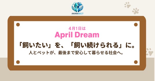 当社は、4月1日を夢を発信する日にしようとするApril Dreamに賛同しています。このプレスリリースは「株式会社ANIMANECT」の夢です。私たちは、人とペットが最後まで安心して暮らし続けられる社会を目指すという夢を発信します。