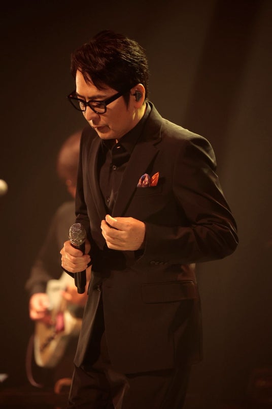 ツアータイトル通り、自身のオリジナルヒット曲と彼を象徴するライフワークとなった「VOCALIST」シリーズや1月にリリースした新カヴァーアルバム『COVERS』をはじめとするカヴァー曲が絶妙に織り交ぜられた、まさに集大成と言えるセットリストでライブは進行していく。時を経ても変わらない透明感と、深みを増したハスキーボイスが会場の隅々まで浸透する。デビュー曲にして究極の代表曲「レイニー ブルー」でのしっとりとした歌声で会場を包み込み、「僕のそばに」や「最後の言い訳」といった、人々の記憶に深く刻まれた名バラードが丁寧に紡がれていく。40年経っても変わらない透明感に、今の彼にしか出せない深い包容力が加わり、観客は一音たりとも聞き逃すまいと静かに耳を傾けていた。