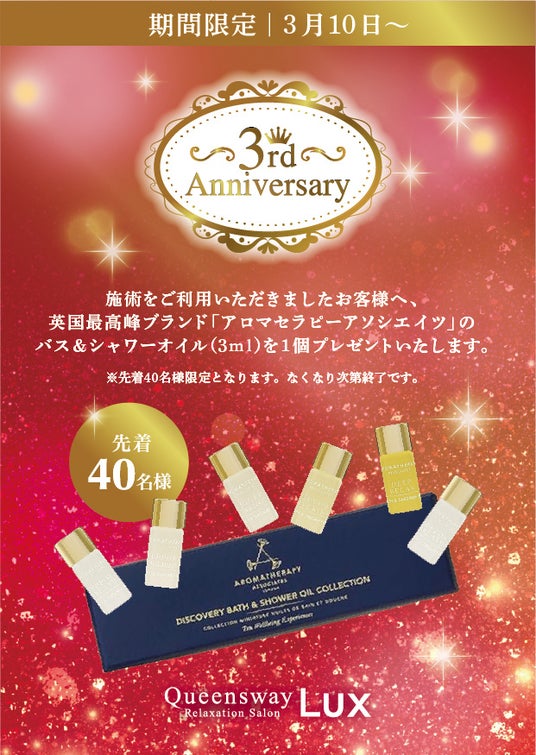 株式会社 BEST HERBS(代表取締役社長:塚田正之)の運営する、Queensway LUXは、2026年3月10日(火)でオープン3周年目を迎えます。