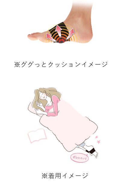 ◆ 推し活終わりの寝ている間に着けておくだけで、足裏のコリ・はりを手軽にケア。“ググッとクッション”で歩くたび、土踏まずが気持ちいい!