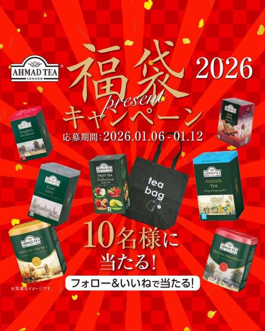 英国紅茶ブランド《アーマッドティー(AHMAD TEA)》輸入総代理店 富永貿易株式会社(本社:兵庫県神戸市)は、新年のご挨拶を兼ねて、公式SNSアカウント(X・Instagram)にて、「紅茶の福袋」が総計10名様に当たるプレゼントキャンペーンを2026年1月6日より実施いたします。
