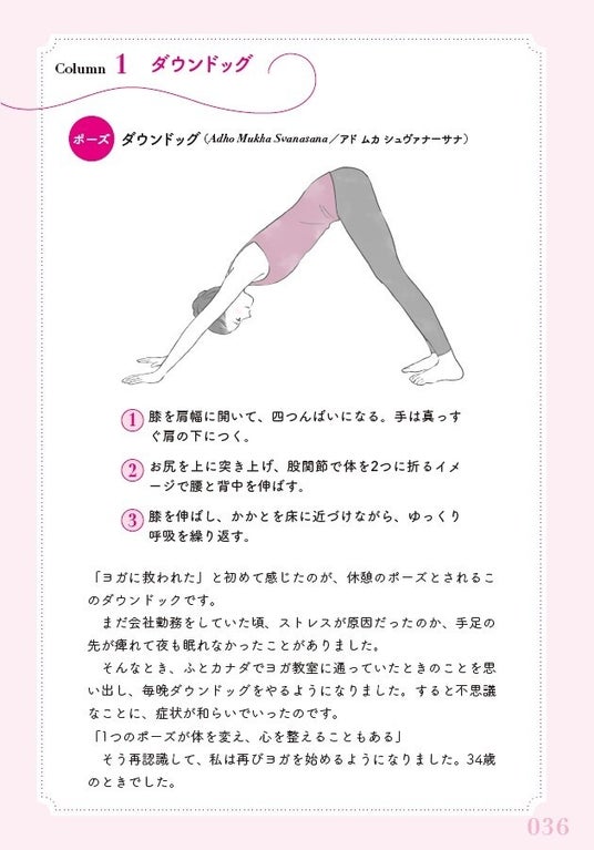 ▲ヨガのポーズ「ダウンドッグ」で心と体を整えます