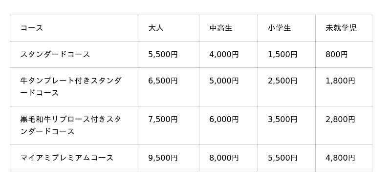 ※マイアミプレミアムコースは期間限定コースです。(2日前まで要予約)