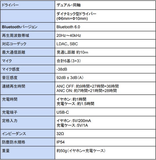 iOS/Android OSアプリ「Edifier ConneX」(無料、日本語対応)をご利用いただくと、ノイズキャ ンセリング設定や、イコライザーを用いた音質調整、サウンドモード、装着検出、タッチコントロー ル設定など「EvoBuds Pro」が持つさまざまな機能を活用いただけます。■製品仕様