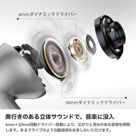 ■6mm+10mmのデュアルドライバーで臨場感あふれる豊かなサウンド