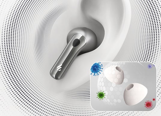 「EvoBuds」は軽量ボディと人間工学に基づいたデザイン、柔らかい抗菌イヤーチップにより、一 日中装着しても圧迫感なく快適にお使いいただけます。長時間の装着でも疲れにくく、快適なリスニングを楽しめます。