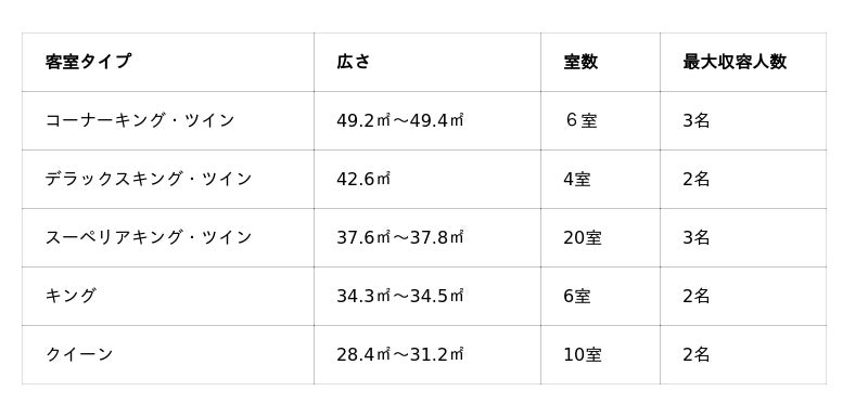 今般の改装では、より快適な滞在をサポートするため、USBコンセントの設置や電動カーテン、スマートテレビを導入。ライフスタイルの変遷と時代に合わせた客室環境を整えることで、レジャー・ビジネスを問わず多様なニーズにお応えしてまいります。さらに、ファミリーやカップルをはじめ、幅広い世代のゲストにご満足いただけるよう、ベッドタイプは「ハリウッドタイプ※2」と「ツインタイプ」のいずれにも対応可能としました。2台のベッドをご希望のお客さま、1台で大きいベッドをご希望のお客さま、それぞれに応じた柔軟な客室タイプでお迎えいたします。残るスタンダードフロアについても順次改装を進め、新たなフロアカテゴリ「コンフォートフロア」としての完成を目指してまいります。