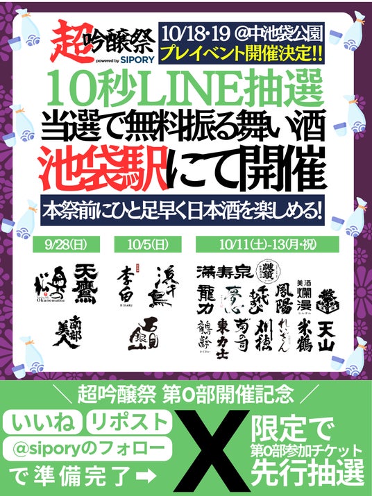 今回のプレイベントは、10月18日(土)・19日(日)にHareza池袋・中池袋公園で開催される「超吟醸祭 powered by SIPORY」の開催に向けたプロローグです。