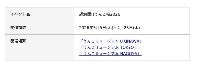 『超満開!!うんこ桜2026』のポイント
