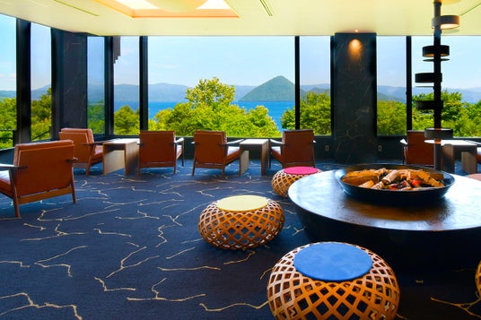 ホテルロビーからも洞爺湖に浮かぶ中島を一望できる
