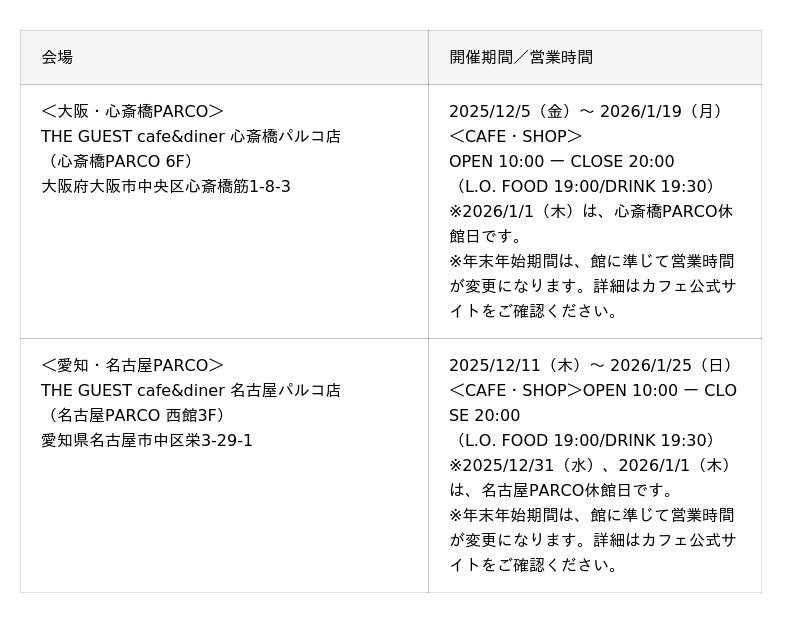 心斎橋会場は、12/6(土)・12/7(日)、名古屋会場は、 12/13(土)・12/14(日)を予定しております。
