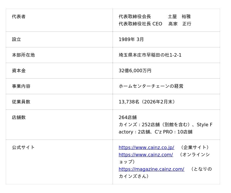 株式会社カインズは、29都道府県下に264店舗を展開するホームセンターチェーンです。