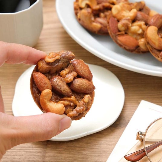 本商品は、バターときび糖で仕上げた生地に、焦がしキャラメルでコク深くキャラメリゼしたくるみ・カシューナッツ・アーモンドをあわせて焼き上げた冬限定タルト。タルト生地はほろっとほどける口あたりで、キャラメルのほろ苦さと相性抜群。ナッツの香ばしさと甘さのバランスが心地よく、大人が満足できる味わいに仕上げています。