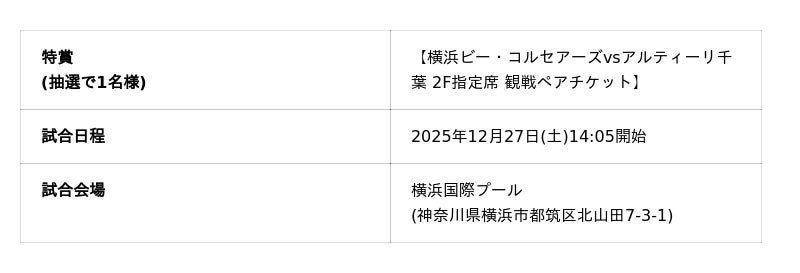 12月27日 (土) 観戦ペアチケットがもらえるチャンス!