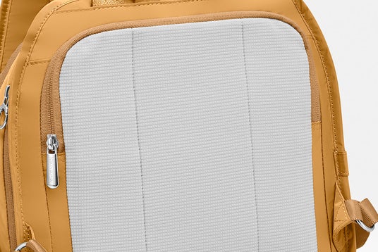 背面と肩ベルト裏に吸水速乾生地を採用。