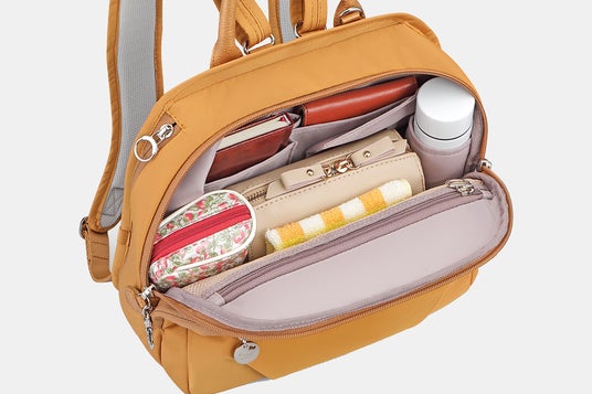 中身が一目でわかるメッシュポケットや、500mlペットボトルを収納できるポケット、人混みでも安