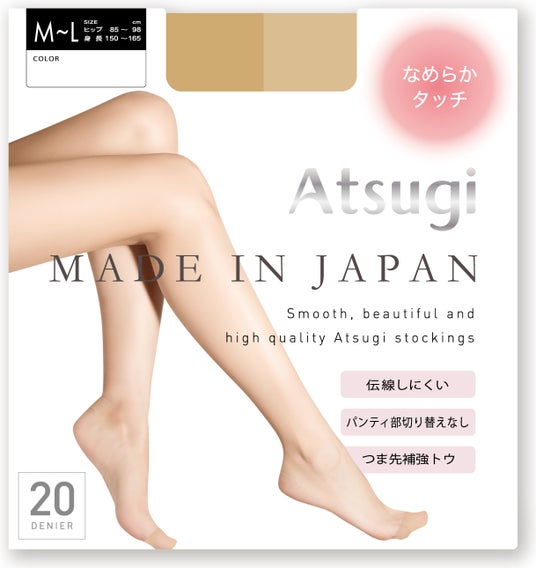 このような背景から、アツギは確かな品質を持つ日本製ストッキングを2026年春夏シーズンに発売いたします。肌触りがなめらかな「なめらかタッチ」と丈夫で破れにくい「丈夫でしっかり」の質感が異なる2型をご提案します。日本品質の快適なはき心地に加えて、丈の短いボトムスにも合わせやすいファッション性も両立させた、こだわりポイントをご紹介します。