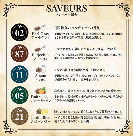 英国のサロンへと誘う一枚の招待状。この紅茶の名の由来とされる第2代グレイ伯爵に敬意を表して。