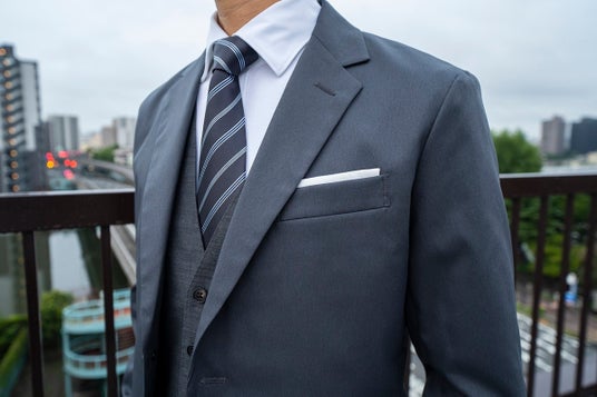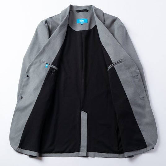 特 徴:生地はストレッチ・撥水・速乾・防シワなどの高機能性を供える自社オリジナル素材「ultimex」と、特殊な染め方をした「カチオン糸」の2種類を使用。身体から発生する遠赤外線を吸収して蓄熱する特殊な素材を裏地に使用し、保温性を高めました。さらに、裏地も伸縮性が高く軽量なので、着心地の快適さは損なわれません。冬場の静電気を軽減するため、袖口や裾などに放電テープを縫い込みました。胸ポケットは、出し入れ可能なフェイクチーフ付き。左内ポケットにはファスナーがついており、スマホや名刺入れ、パスポートなどが収納可能。パンツのウエストは背面ゴムなので、体型の変化にも柔軟に対応します。右サイドポケット横の目立ちにくいコンシールファスナーを使用したポケットには、落としたくないスマホやワイヤレスイヤフォンなどの小物が収納可能。