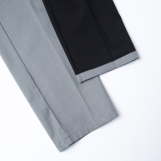 本商品には、自社開発の高機能素材「ultimex/アルティメックス」と、深みのある色合いを表現するカチオン糸の2種類を使用。再生ポリエステルのカチオン糸を採用し、環境に配慮した素材にリニューアルしました。ストレッチ・速乾・撥水・イージーケアといった機能性を備えながら、上品な光沢と深みのある色合い、ハリのある上質な生地感を実現しています。