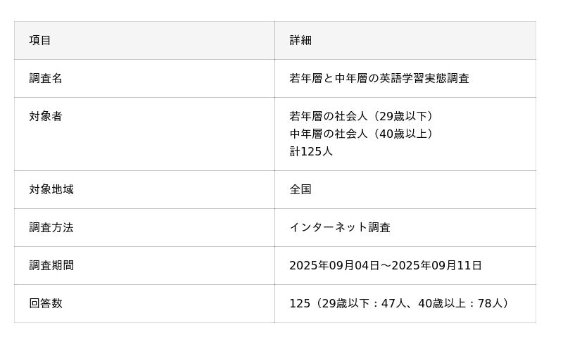 株式会社 学研ホールディングス(東京・品川/代表取締役社長:宮原博昭)のグループ会社で、実践的な英会話学習ができるAI英会話アプリ「Talkful」を運営する株式会社 ベンド(東京・千代田/CEO:近藤潔)は、運営する「スキルアップ研究所」にて、「若年層と中年層の英語学習実態調査」を行い、2025年10月17日に結果を発表いたしました。