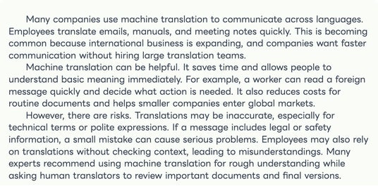 本ページの予想問題は、過去の出題傾向を分析したうえで、級別に次の要件を満たすよう設計しています。- 級別に本文語数・段落構成・要点数(2~3点)を設計し、要約が成立する骨子(主張/利点欠点/原因結果など)が必ず取れる構造にしています。