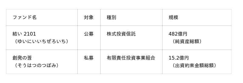 これに加えて、2021年3月から、これからの社会を創発する可能性を秘めたスタートアップに投資をする投資事業有限責任組合「創発の莟」(私募)の運営をおこなっています。