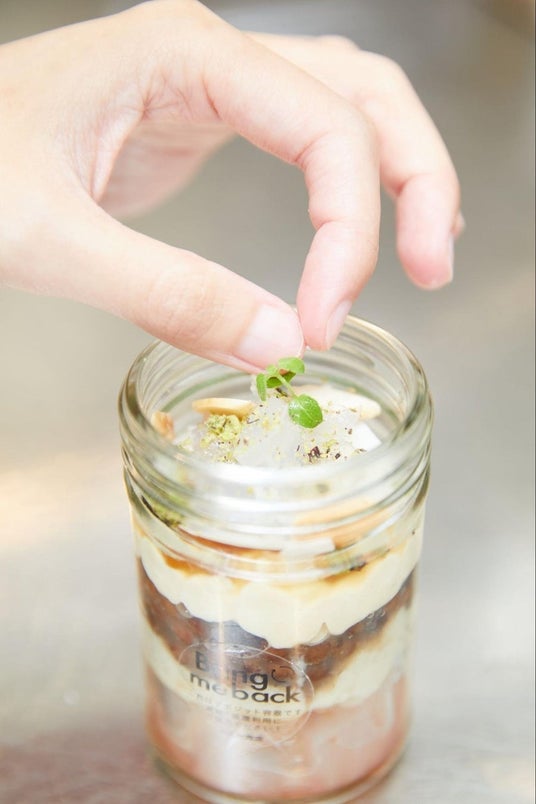 パフェ容器は回収・再利用可能なリターナブル瓶を採用し、デポジット制で循環利用を推進。