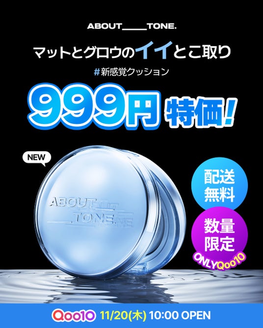 今回の新商品発売を記念して、11月20日(木)10時よりアバウトトーンQoo10公式ショップにて999円(送料無料)一日限りの大特価セールを開催いたします。