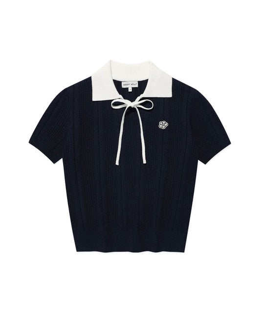 WOMEN'S RIBBON COLLAR SHORT SLEEVE KNIT