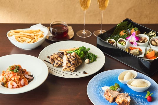 アフタヌーンティーとは違い、仕事終わりなどに夕食を兼ねた料理とともに紅茶やスイーツを楽しむ「ナイトハイティー」。一日の締めくくりをBar & Restaurant COCONOMA(ココノマ)で。