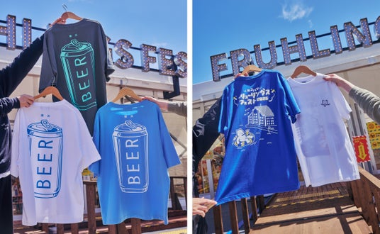 画像左から)BEER×オフィシャルコラボT(#着るBEER)、ヨコハマフリューリングスフェスト 2026 Tシャツ(BEER-KUMA SHOP BY PERFECT BEER(R))