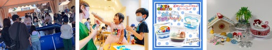 画像左から)釣り堀&生き物ふれあい体験 ファミリーフィッシング&タッチング、sobolon(海洋プラスチックの万華鏡づくり)、ジョイキャンドル ワークショップ(ジェルキャンドル作り)、お菓子の家とオリジナルオルゴールを作ろう!