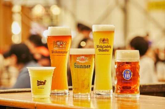 画像左から)湘南ゴールド(サンクトガーレン)、ヴァイエンステファンIPA(ヴァイエンステファン)、ズュンナーケルシュ(Sünner)、ヴァイスビア ヘル(Konig Ludwig)、マイボック(Hofbrau)