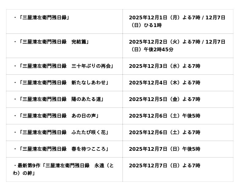 ■最新作の放送に先がけて、2025年12月1日(月)から12月7日(日) にはシリーズ過去 8作も一挙放送!!