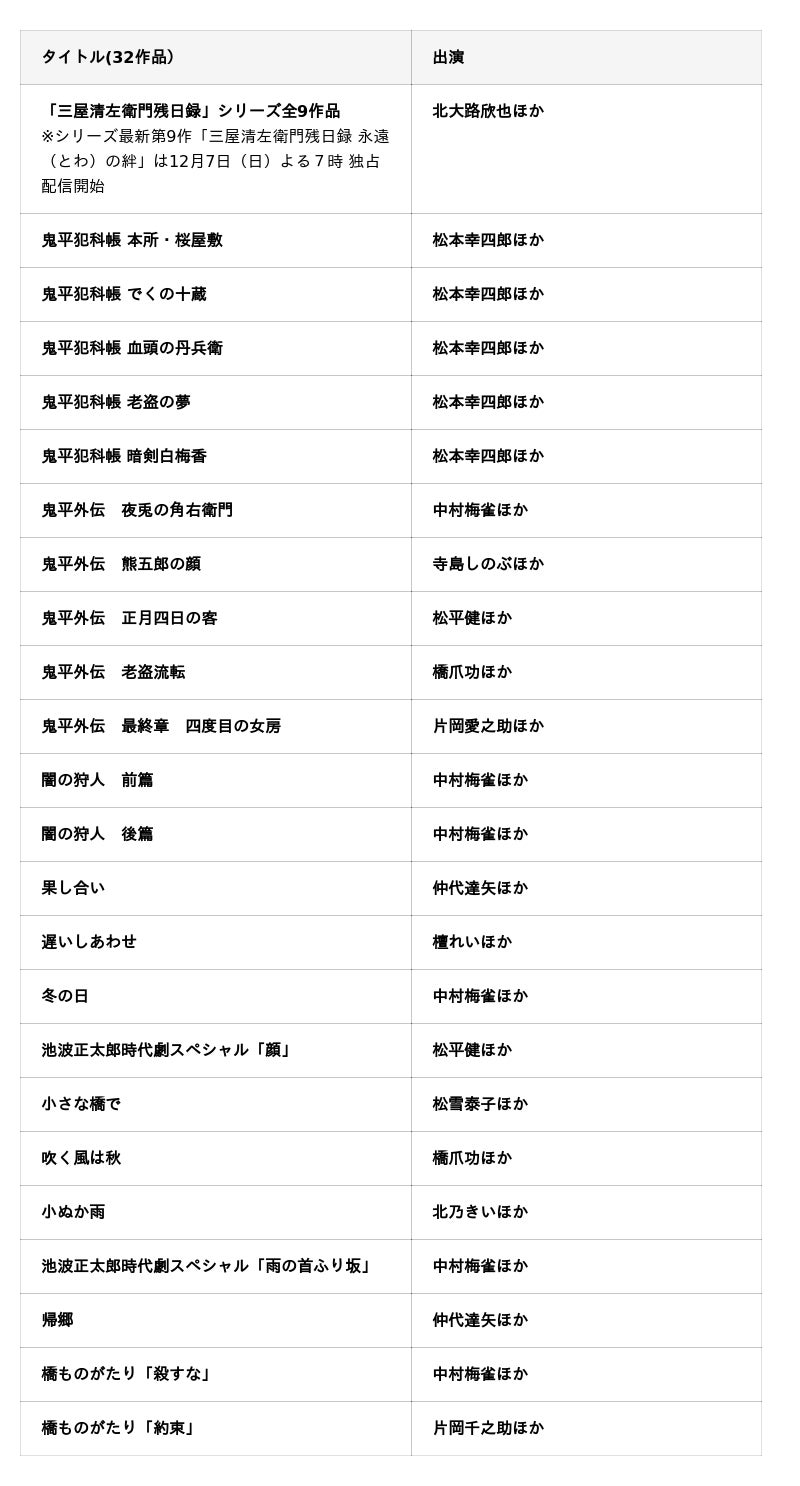 ◆さらに!「三屋清左衛門残日録」シリーズ8作をはじめとした、オリジナル時代劇を一挙放送・配信!◆