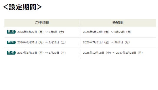 ・2026年5月1日(金)~9月30日(水)までに「大人の休日倶楽部」ホームページからWebでお申し込みされた方で、2026年5月1日(金)~10月31日(土)までに「大人の休日倶楽部カード」へ入会された方が対象です。