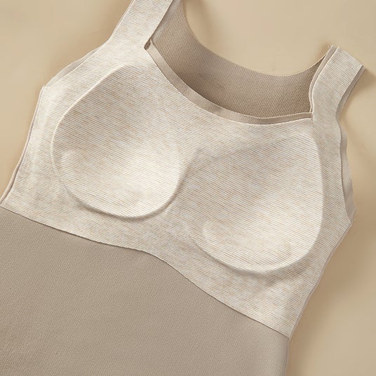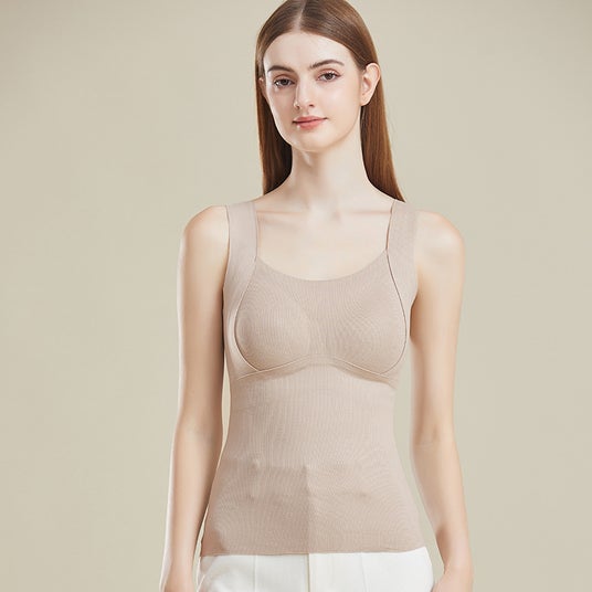 伸縮性のあるブラとキャミソールを一体型にするので、心地よく動きやすい着心地に