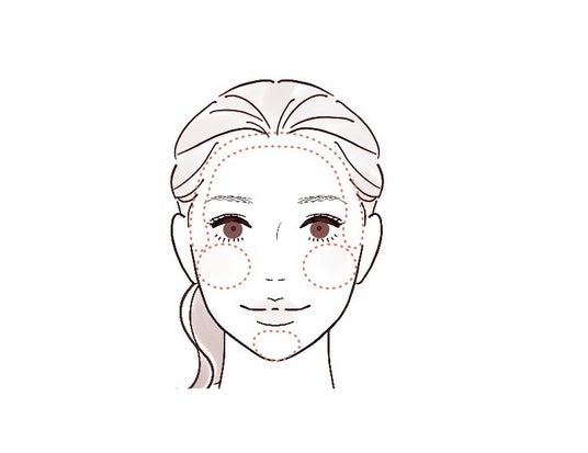 - 頬以外の部分の、あご先・こめかみ・髪の生え際に薄く塗布することで、