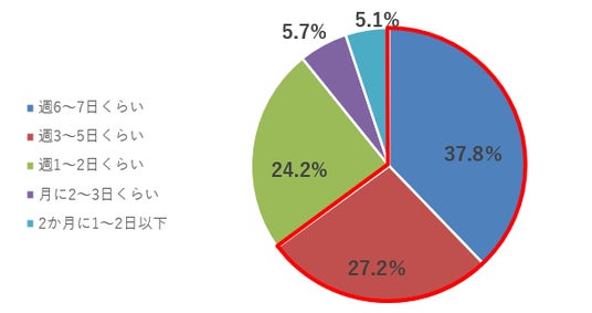全国15歳~49歳の女性1,000名を対象に、日頃メイクをする頻度を調査した結果、8割以上の方が週に3日以上メイクをしていることが判明しました。また、1割上の方がメイクをする頻度は週1~2日と回答しておりました。外出時など特定の状況時のみメイクをし、日常ではメイクをしない方が一定数いることが推察される結果となりました。