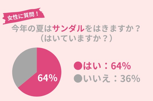 64%と多くの女性が、今年の夏はサンダルをはくようです。