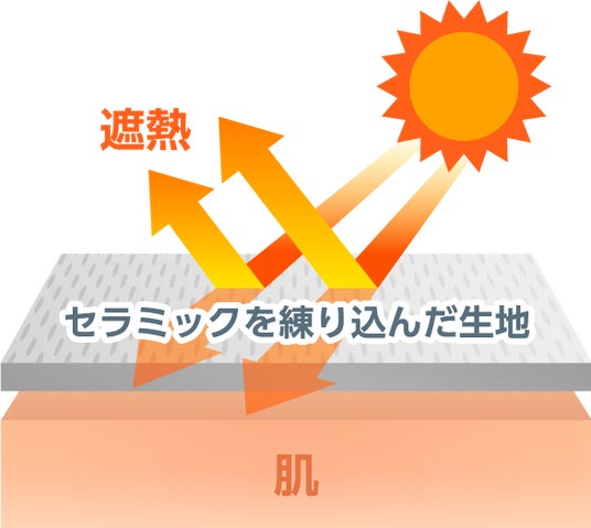 「iCOOL 遮熱UV Tシャツ」は、セラミックを練り込んだ特殊繊維を使用し、熱を通しにくくすることで、太陽の熱による暑さを軽減します。衣服内の温度上昇を抑え、涼やかな肌触りが続きます。炎天下での外出や長時間の屋外活動を快適にする一着です。