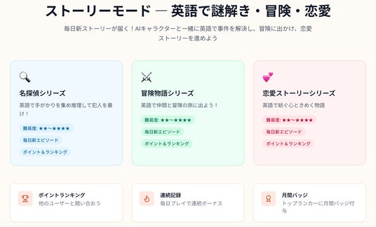 【★新設】ストーリーモード ── 英語で謎解き・冒険・恋愛を体験