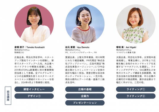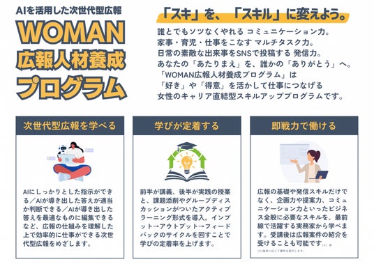 - 名称: WOMAN広報人材養成プログラム- 主催: 株式会社ATOMica