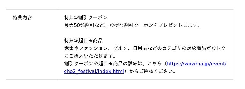 3.ポイント超超祭の特典(https://wowma.jp/event/cho2_festival/index.html)