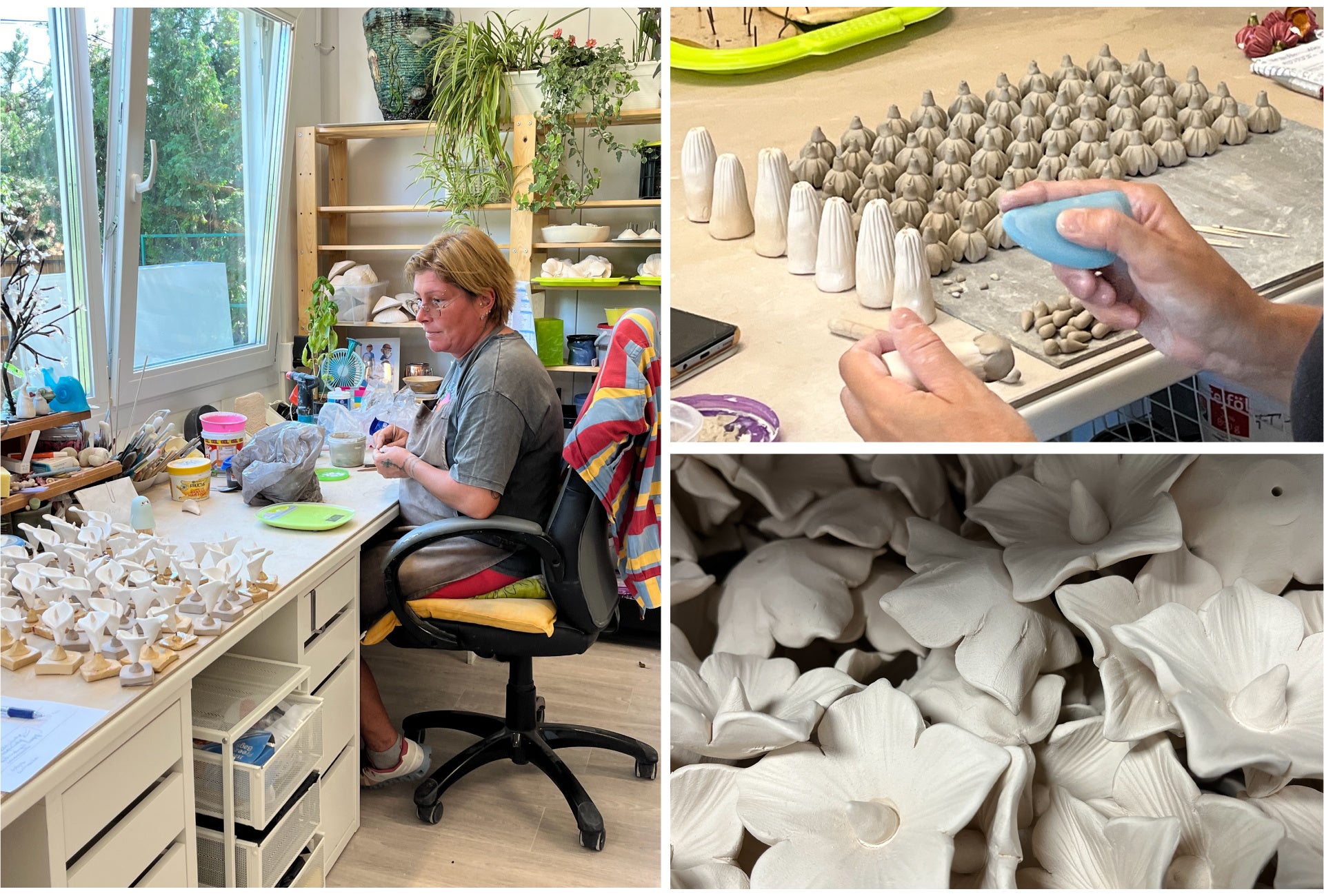 陶器ならではの艶やかさと、色の鮮やかさが魅力です。陶器の花はハンガリーの伝統的な陶器技術を受け継ぐ熟練職人によって、すべて手作りで仕上げられています。カラー、デザインが豊富で、組み合わせる楽しさも魅力の一つ。